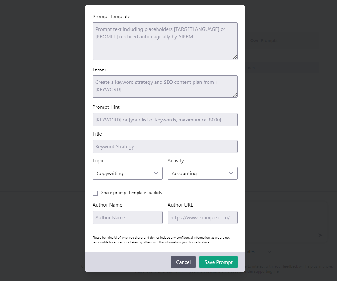 Pro Tip: You can also share the prompt template publicly with other users.