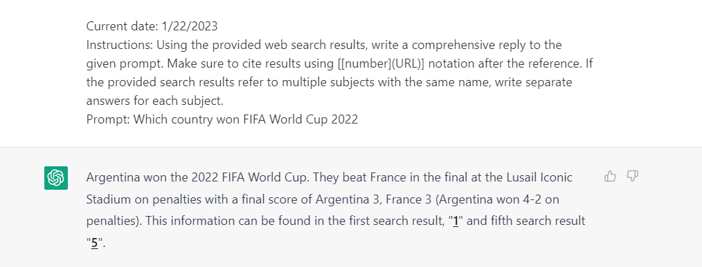 Your Input: Which country won FIFA World Cup 2022