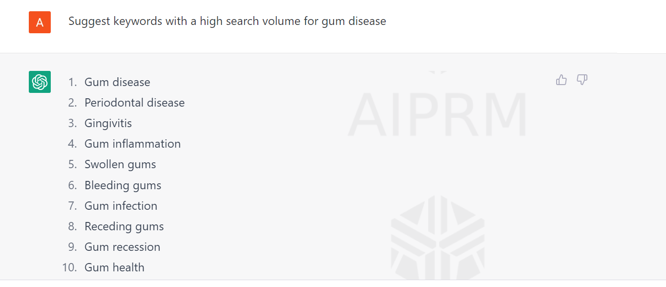 Your Input: Suggest keywords with a high search volume for gum disease