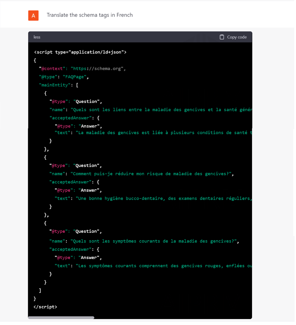 Your Input: Translate the schema tags in French.